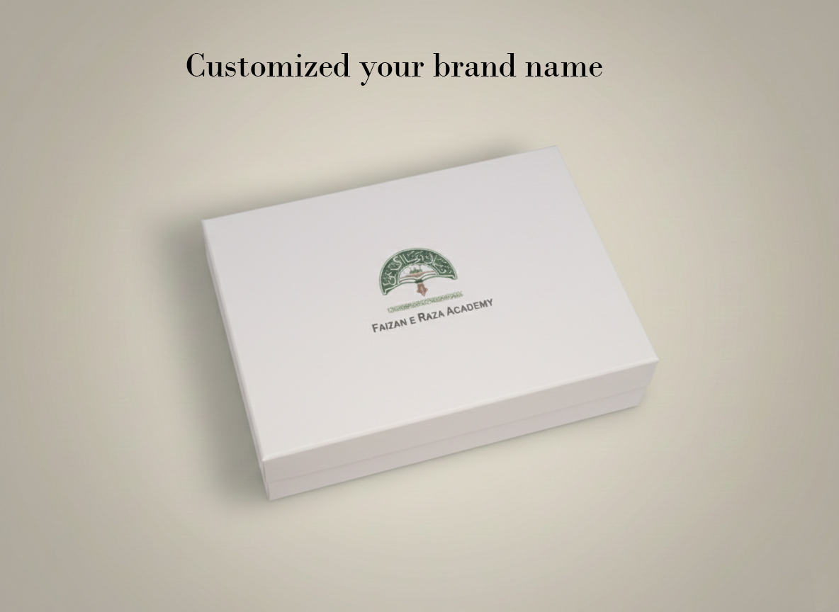 This elegant presentation box from Faizan-e-Raza Academy is designed with a minimalist aesthetic and premium finish. Featuring the academy’s emblem on the lid, the box offers a refined and professional look—perfect for gifting, storing course materials, certificates, or special keepsakes.