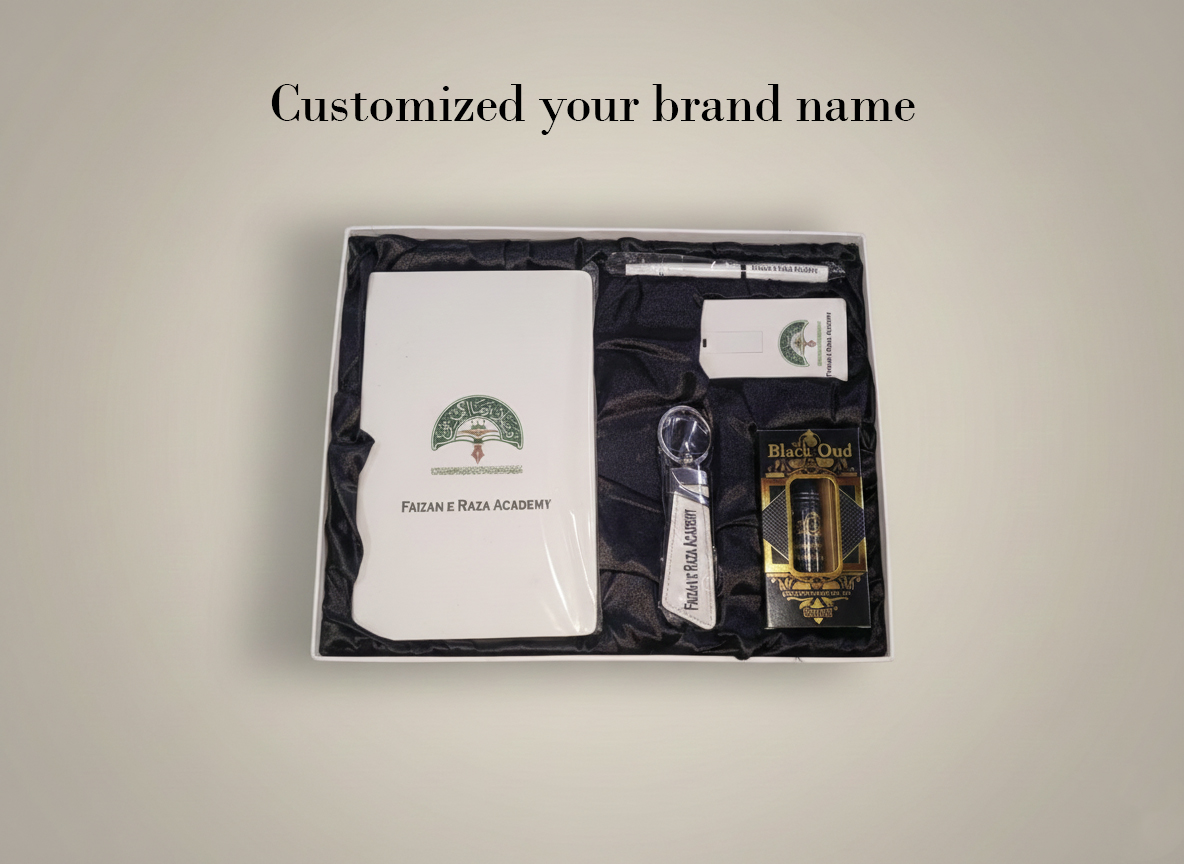 This elegant presentation box from Faizan-e-Raza Academy is designed with a minimalist aesthetic and premium finish.