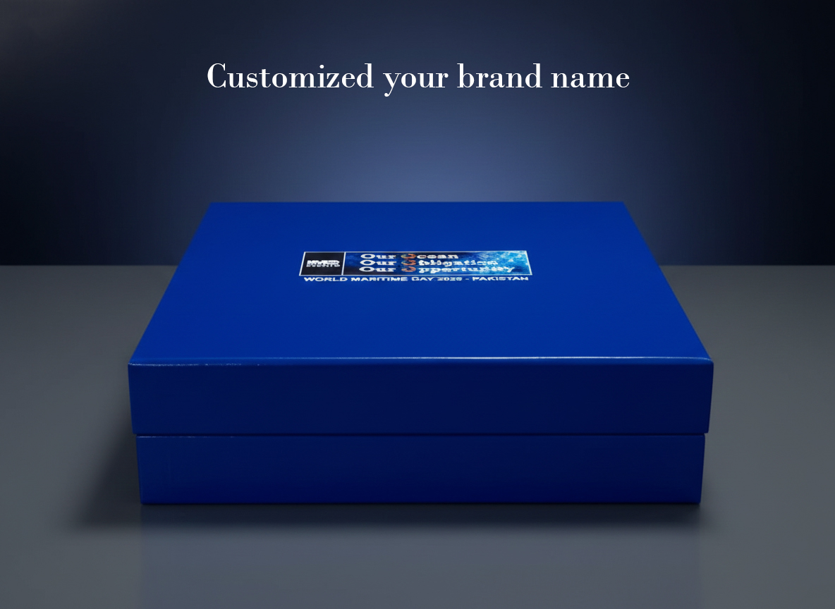 This World Maritime Day 2023 Commemorative Gift Box is crafted with a bold and premium blue finish, designed to honor the significance of maritime heritage and global ocean awareness. Featuring a high-quality printed emblem on the lid, this box is perfect for corporate events, official ceremonies, and maritime-themed presentations. Its sturdy structure and elegant look make it an ideal choice for premium gifts and collectibles.