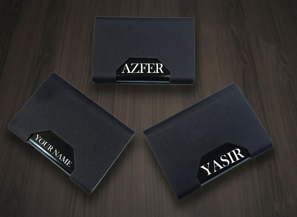 Elevate your professional presence with our premium Personalized Name Card Holder. Designed with a sleek leather-texture exterior and a durable metal interior, this card holder keeps your business cards protected and organized while showcasing your name in an elegant, bold font. Perfect for executives, entrepreneurs, and anyone who values style with practicality.