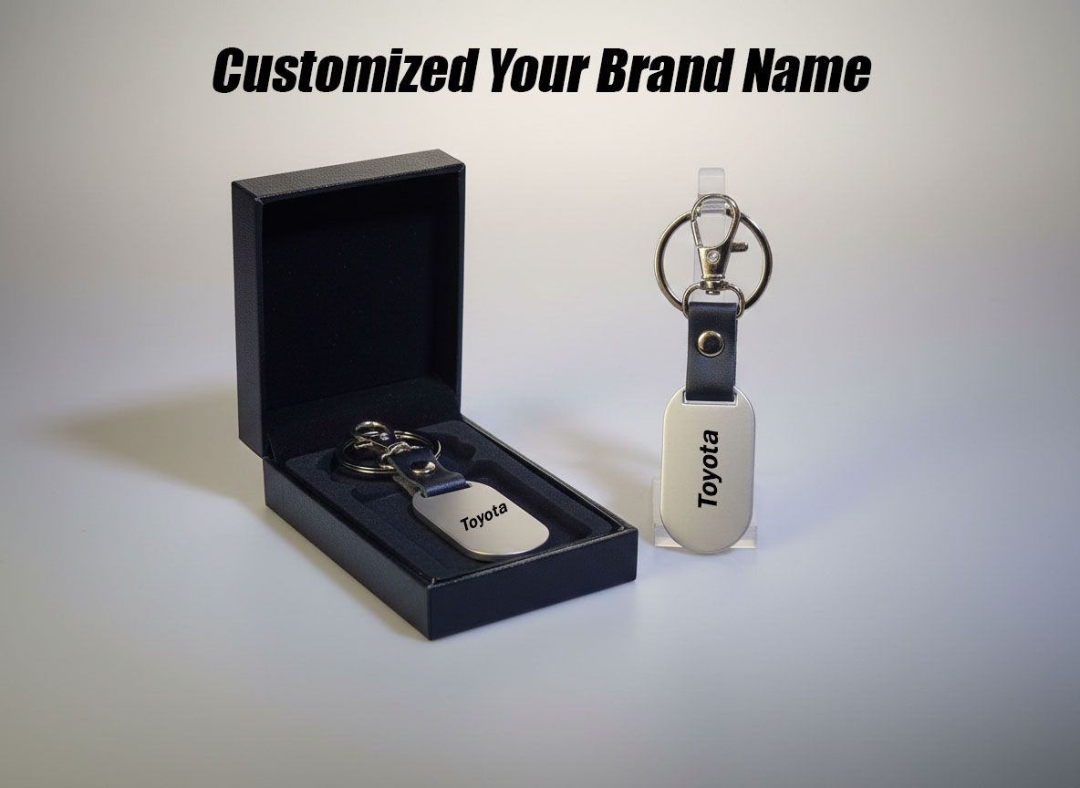Elevate your brand with this premium customizable metal keychain, presented in a stylish gift box. Designed with a sleek metal plate and durable leather strap, it’s perfect for corporate giveaways, dealership promotions, or personalized gifts. Add your own logo or brand name for a polished, professional touch.