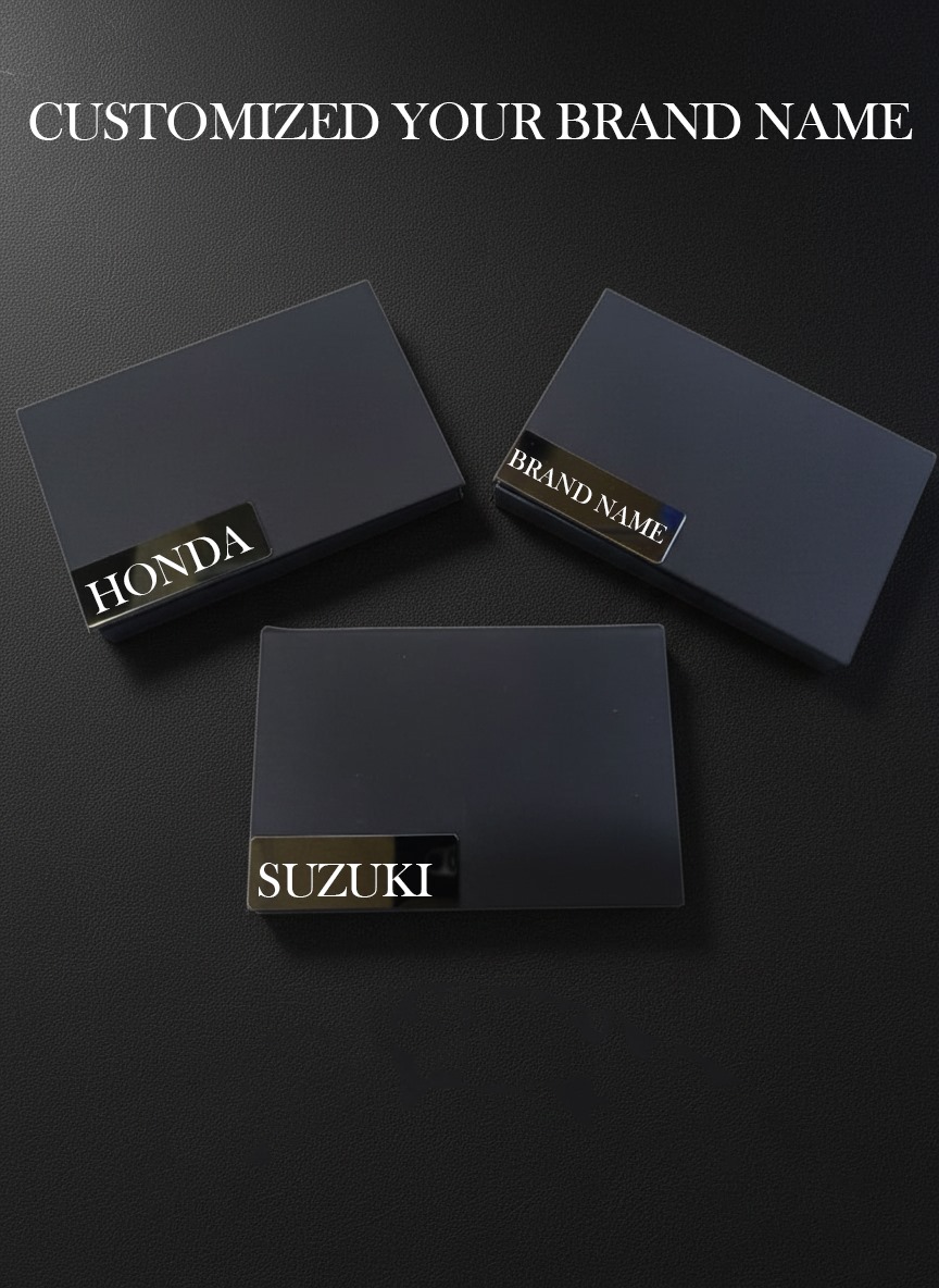 Present your brand with style using our Premium Customizable Metal-Label Card Holder. Designed with a sleek matte finish and an elegant metallic nameplate, this holder allows you to proudly display any brand name?perfect for corporate gifting, dealership branding, or personal identity.
